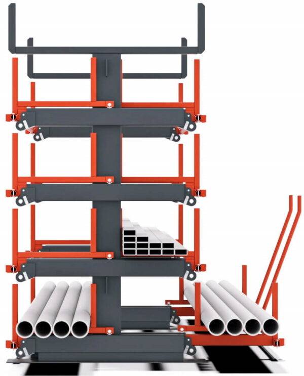 Draagarmstellingen zijn ideaal voor gebruik met rolbruggen, vooral voor het opslaan van lange, zware materialen zoals buizen, balken en houtpakketten.